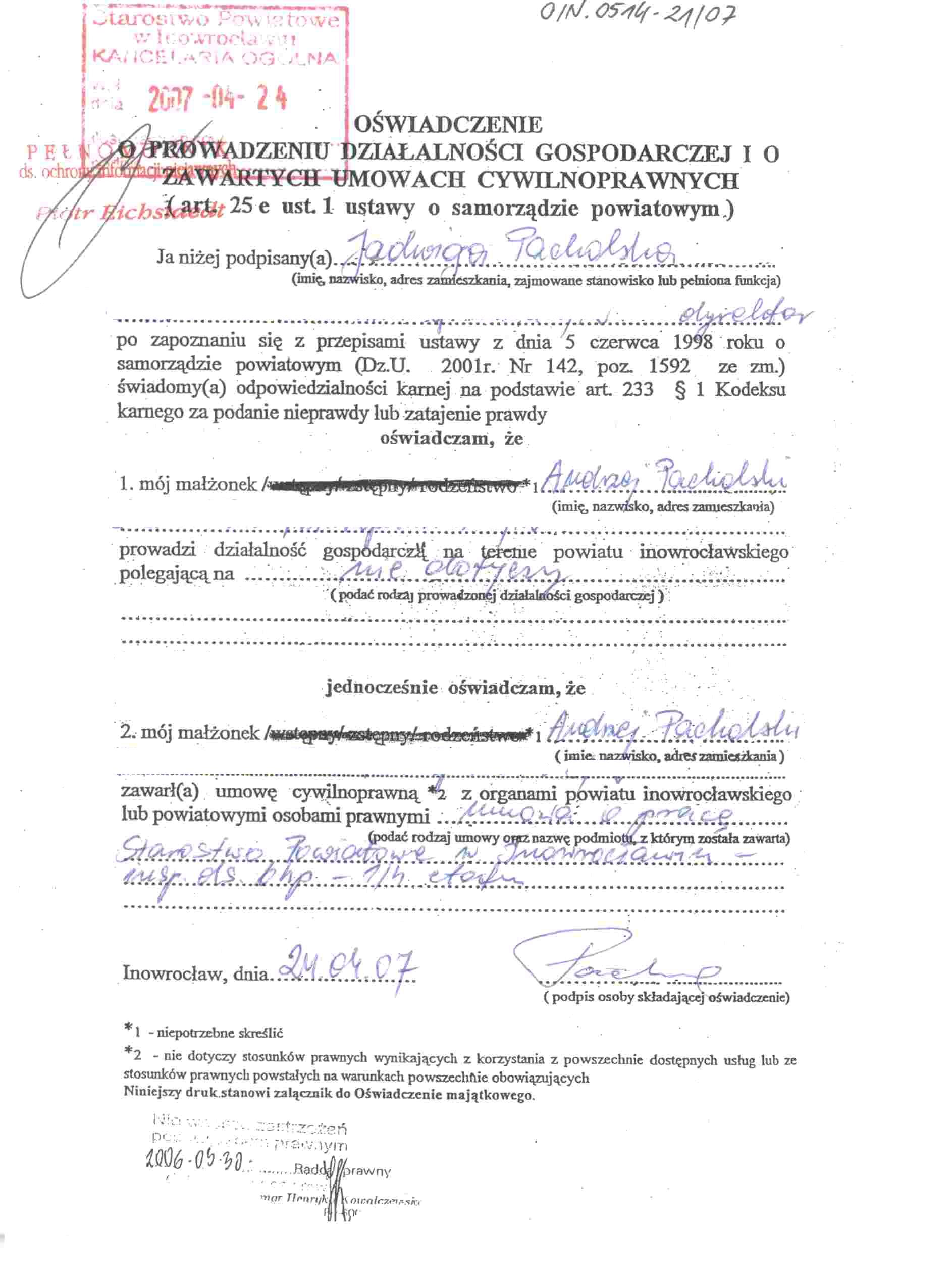 .PDF | 147.4 KB | POBIERZ | O艣wiadczenie majatkowe za rok 2007 | 2008-04-23 10:54:06 | 444 |