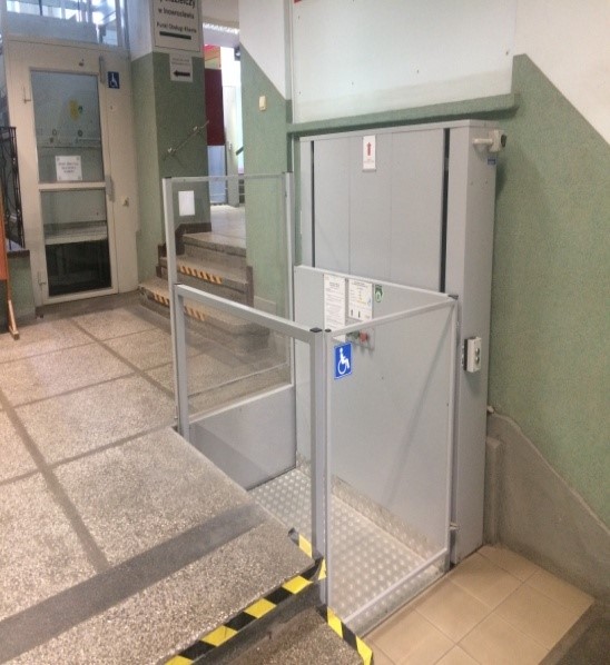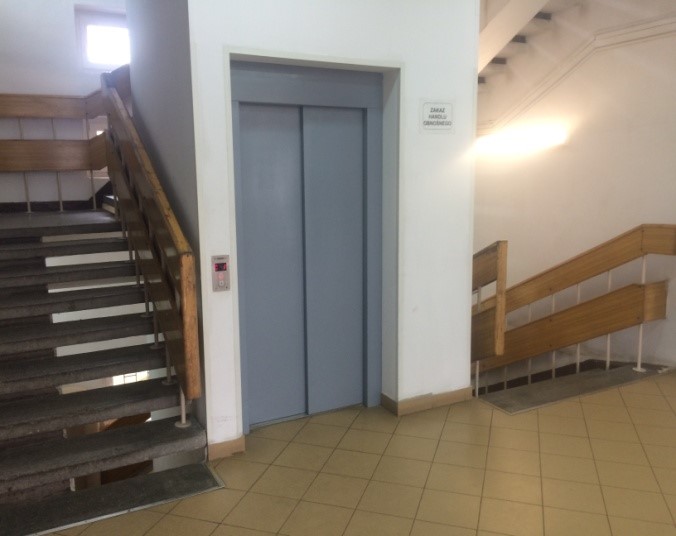 oraz sali obsługi Wydziału Komunikacji i Transportu korzystając z dźwigu i platformy.