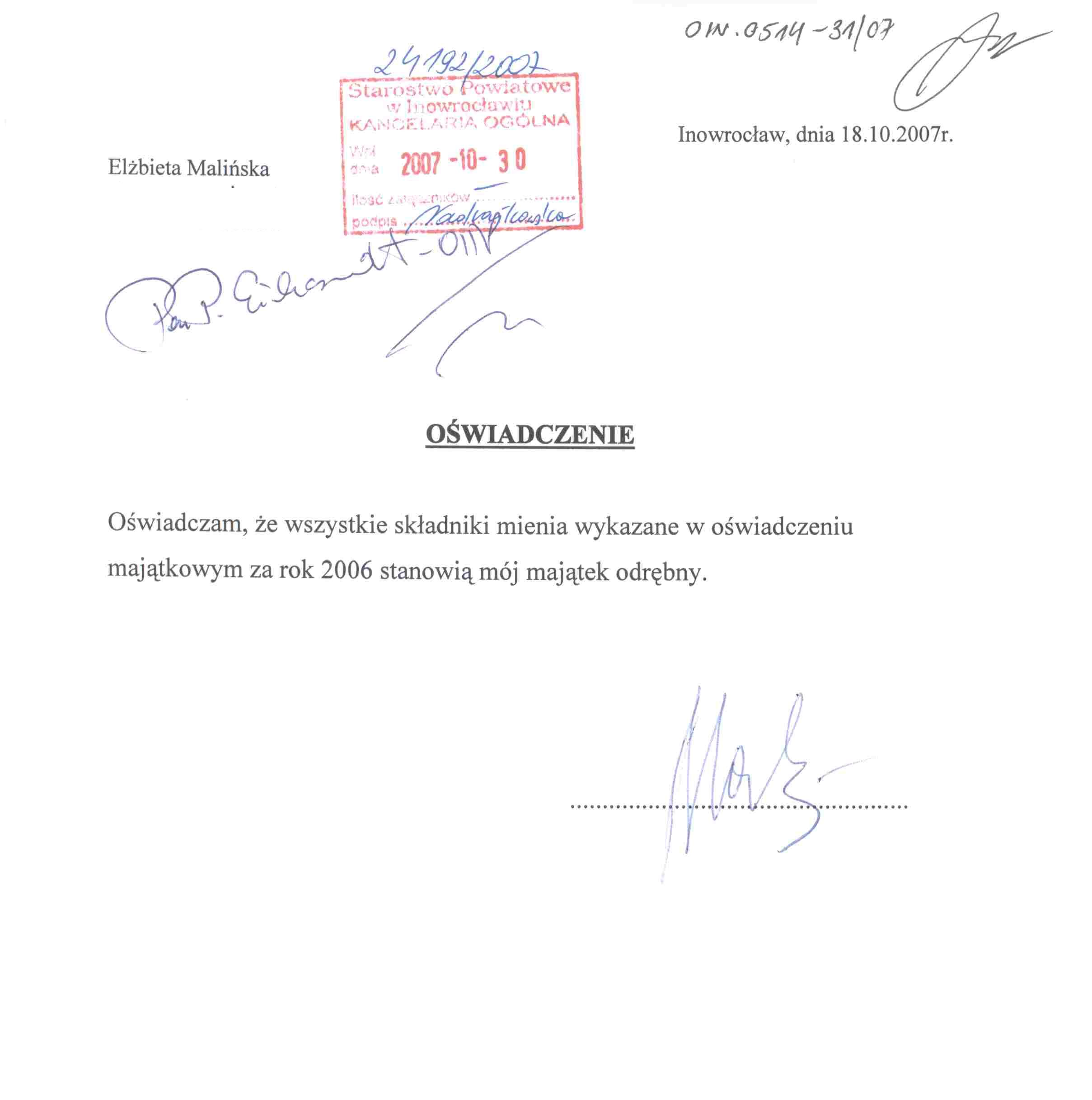| Typ | Rozmiar | Pobierz | Komentarz | Data dodania | Licznik | .PDF | 1406.9 KB | POBIERZ | O艣wiadczenie maj膮tkowe za rok 2006 | 2007-05-10 13:04:50 | 387 | graf. | 163.5 KB | POBIERZ | Za艂膮cznik do o艣wiadczenia maj膮tkowego za 2006 r. | 2007-11-07 10:24:59 | 317 | .PDF | 1300.7 KB | POBIERZ | O艣wiadczenie maj膮tkowe na koniec kadencji | 2007-11-16 11:13:07 | 578 | .PDF | 150.5 KB | POBIERZ | tre艣膰 o艣wiadczenia | 2009-05-13 13:55:20 | 357 |